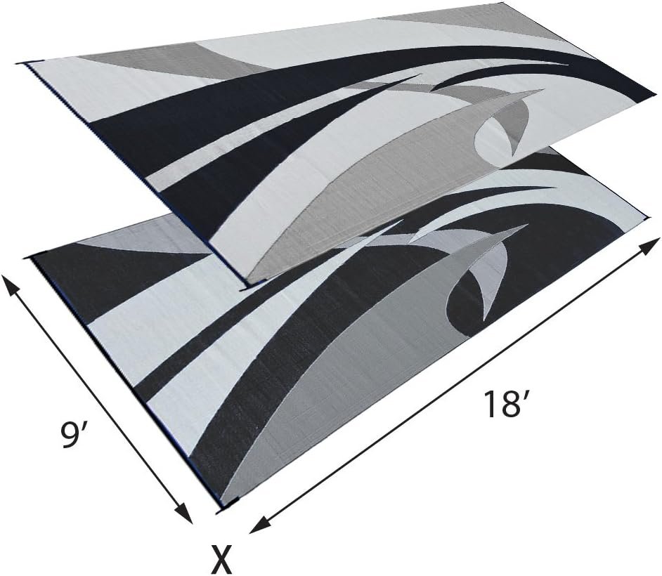 Enhance your outdoor living space with the Stylish Camping Reversible Mat from the Stylish Camping Store. This 9x18-foot, UV-coated polypropylene rug is durable, lightweight, and folds easily into the included carrying bag for stress-free portability. Its breathable, soft material won’t damage grass and is a breeze to clean—simply sweep or spray with water. Perfect for RVs, patios, picnics, or the beach, this mat combines practicality and style for all your outdoor adventures.