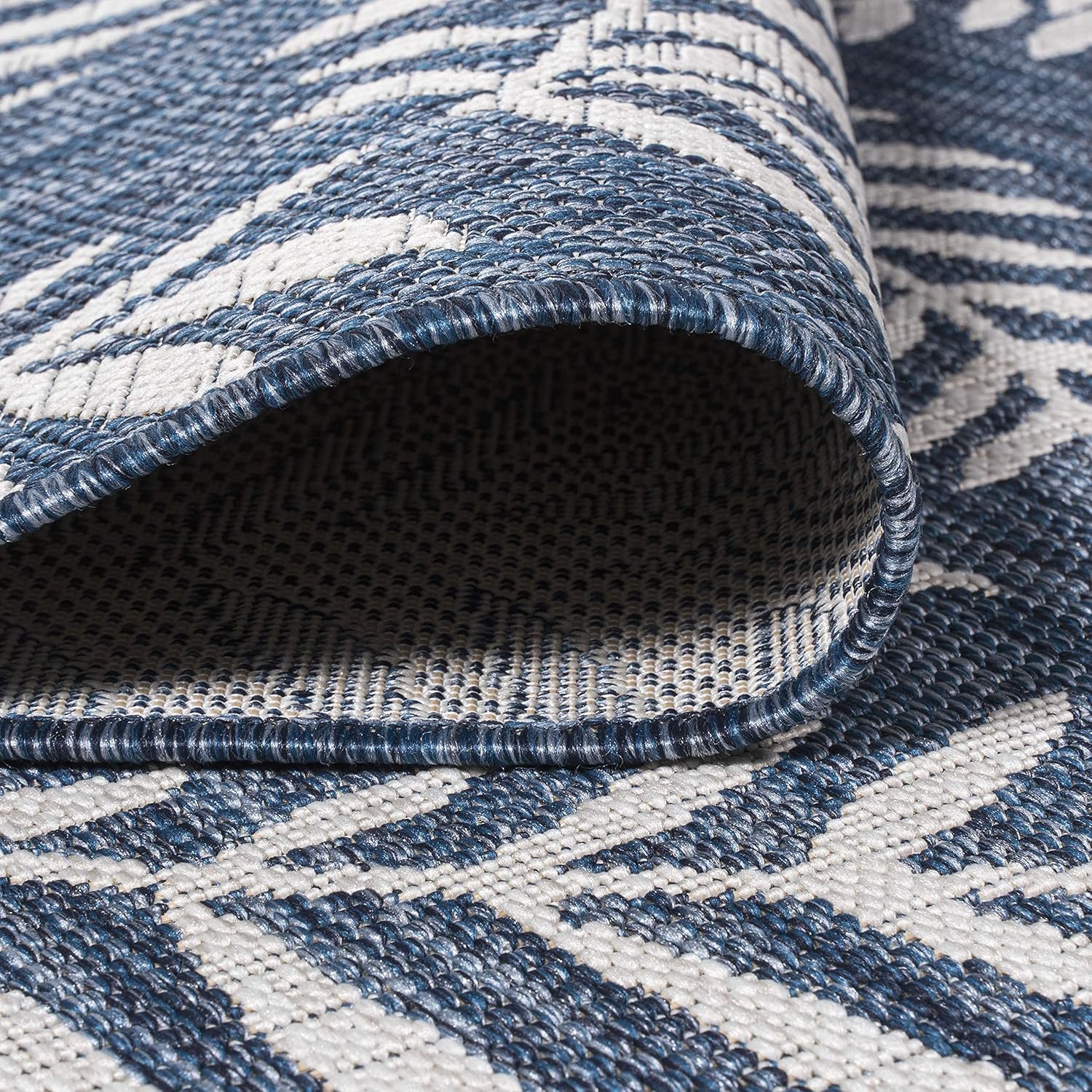 Compared to other synthetic fiber rug brands like Jaipur Living Polaris or Respite, this product matches on weather resistance and easy cleaning, but stands out for its distinctive palm frond design and navy/ivory colorway. Jaipur options may include more size and color variety, but JONATHAN Y’s flat-weave build is just as ideal for patios with heavy use.