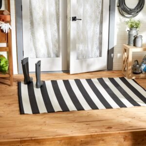 - Low Pile and Flat-Weave: This model is easy to sweep or hose off—an excellent easy clean rug for families with pets or kids. Won’t obstruct doors.