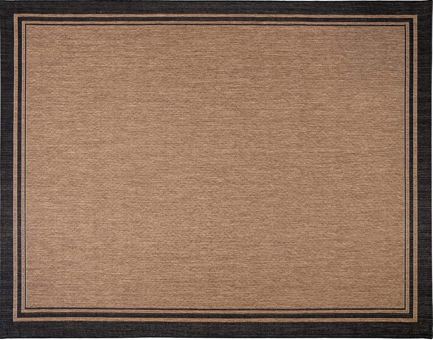Upgrade your indoor or outdoor spaces with the Gertmenian Indoor Outdoor Classic Flatweave Area Rug, designed for versatility and easy cleaning—simply hose it down and let it dry! Crafted on precision Belgian looms from UV-resistant polypropylene, this 5x7 ft rug stands up to sun, stains, and heavy foot traffic. The classic black and tan border adds timeless style, while the family-owned Gertmenian brand guarantees quality you can trust. Perfect for patios, decks, mudrooms, and more, this rug is a practical yet stylish choice for any high-traffic area.