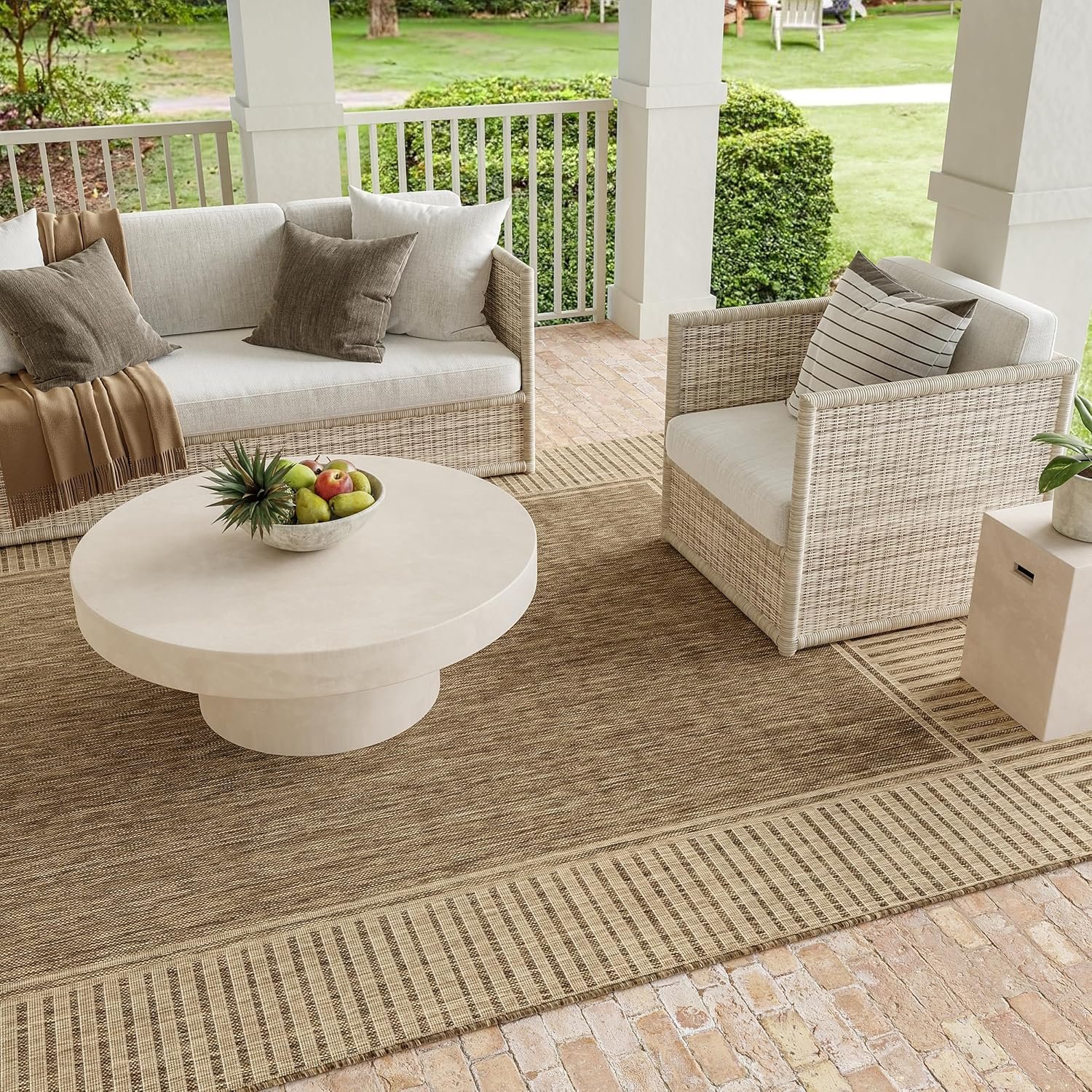 • Versatile Indoor Outdoor Decor: Available in a stylish brown and ivory palette, this striped border rug suits patios, living rooms, and more, enhancing your indoor outdoor decor scheme.