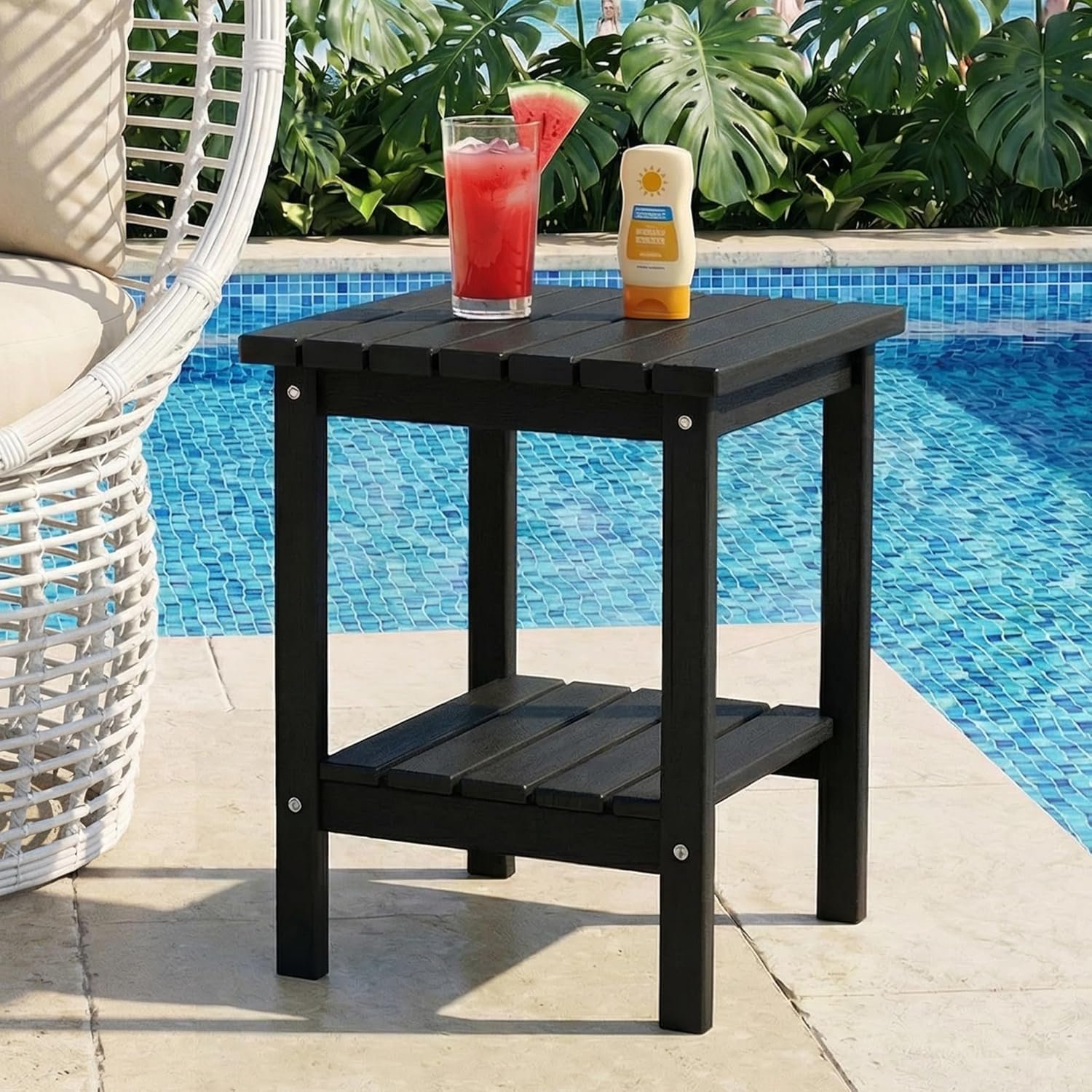 - 2-tier storage: Double-layer design adds storage and display space for balcony decor or as a poolside table.
