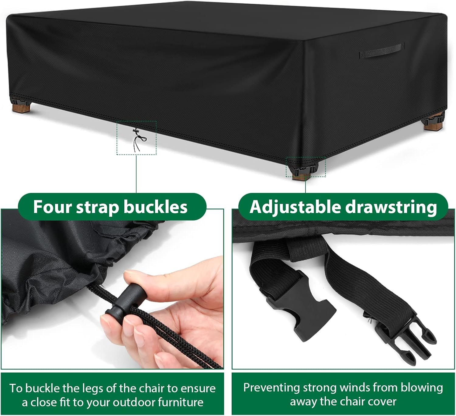 • Windproof Design: Four adjustable clips ensure the cover stays put even in gusty conditions, securing each furniture leg tightly.