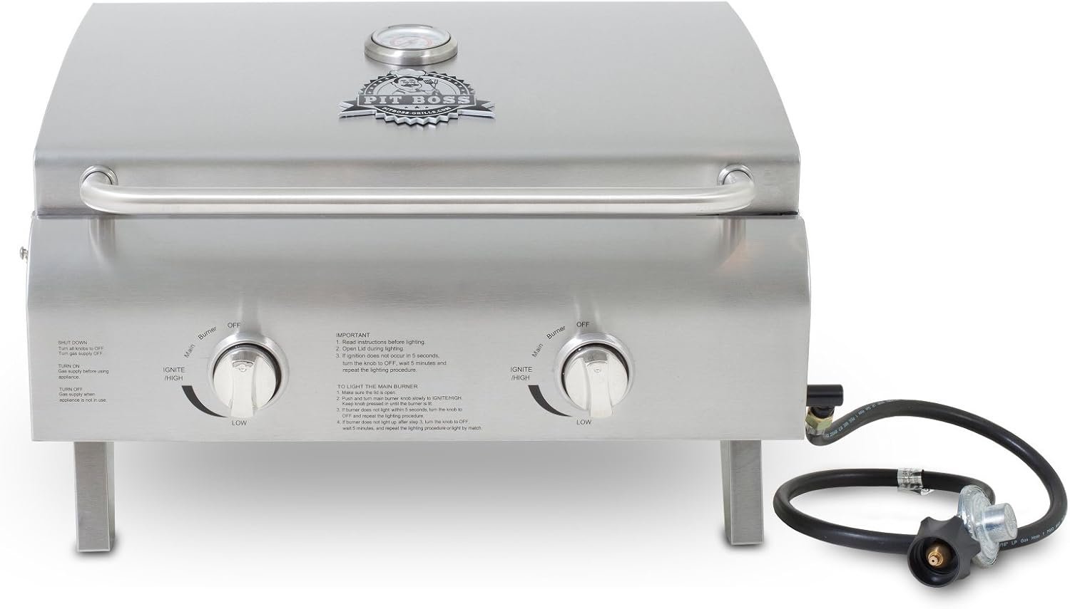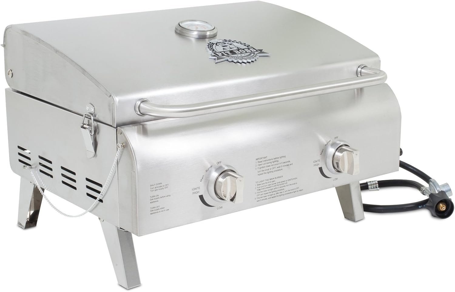 The Pit Boss Grills 75275 Stainless Steel Two-Burner Portable Grill offers 274 square inches of cooking space—enough for about 12 burgers—making it perfect for outdoor gatherings or tailgates. Built from durable stainless steel with folding legs and a sturdy handle, this portable grill is both easy to transport and clean. With 20,000 BTUs of grilling power, an easy push-and-turn ignition, and built-in dome thermometer, it delivers reliable performance every time. Discover convenience and quality grilling with PIT BOSS, ideal for on-the-go barbecue enthusiasts.