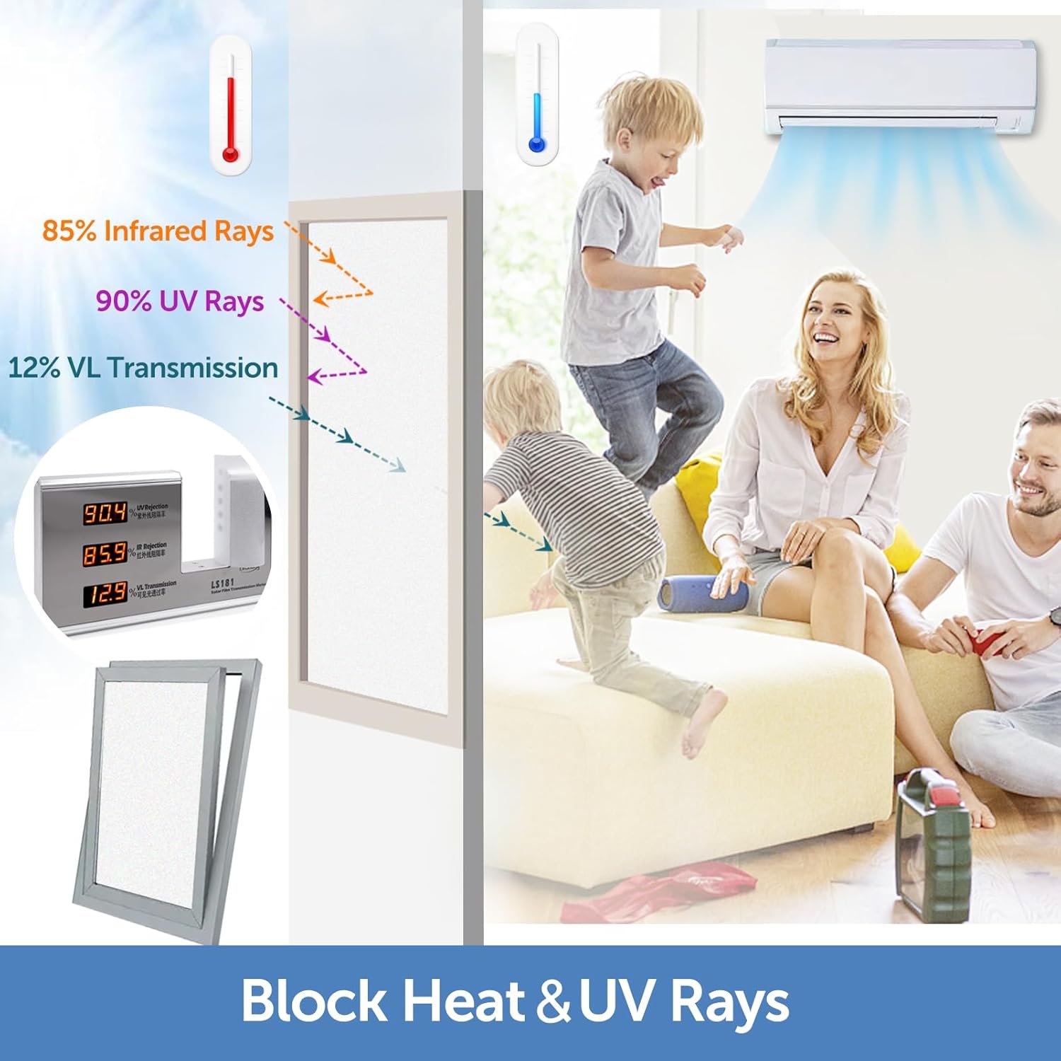 Definitely—this tool acts as a heat control window film and is rated to block up to 93% of harmful UV rays and 86% infrared, helping keep rooms cool and protecting interiors from sun damage. - Will it work for bathroom window privacy?