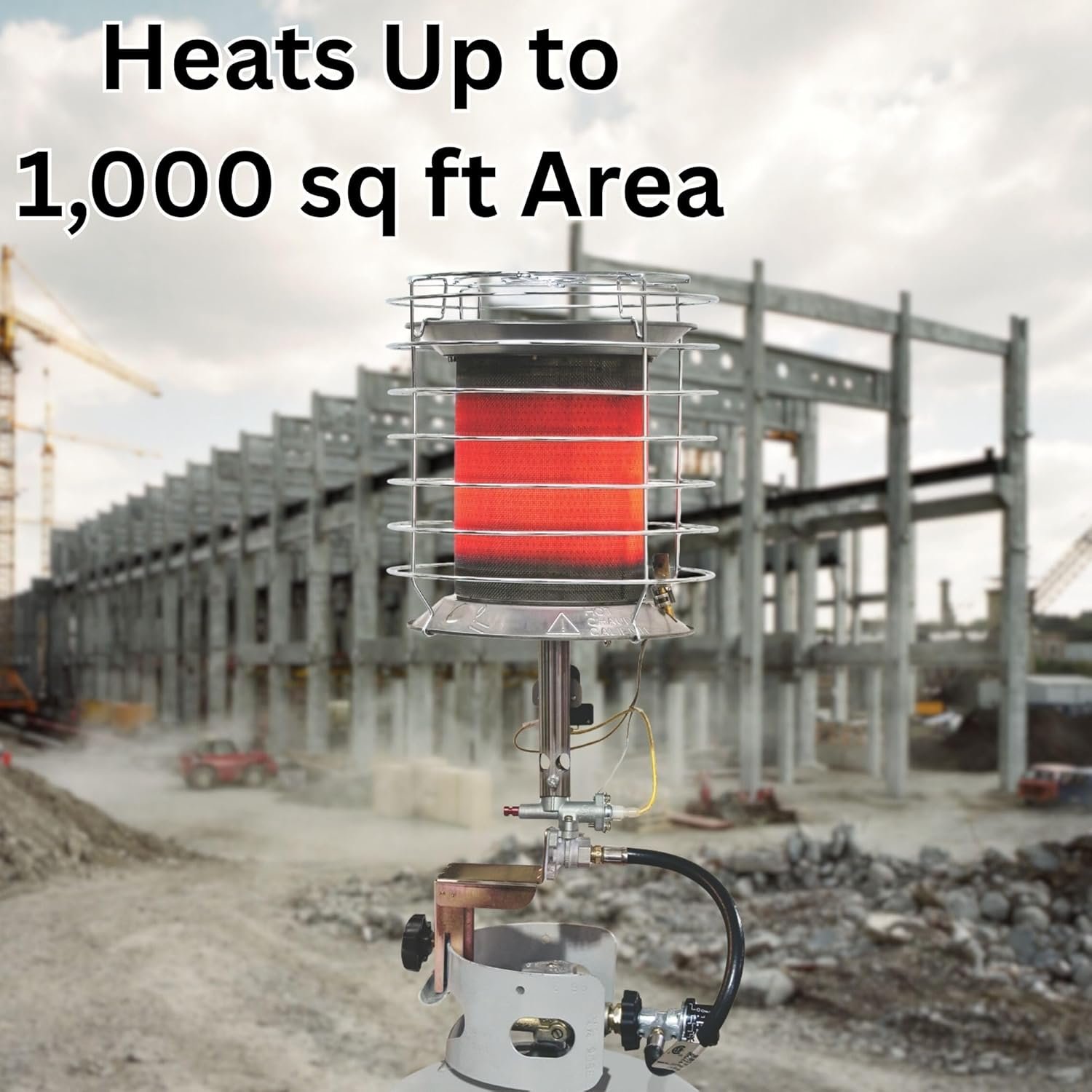 - Quick Connect Propane Setup: Easily attaches to a standard 20lb LP gas tank, perfect for quick outdoor or jobsite setup. The large heating area—up to 1,000 sq. ft.—is ideal for gatherings or work projects.
