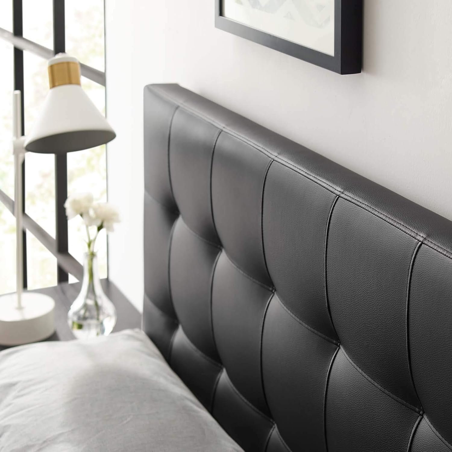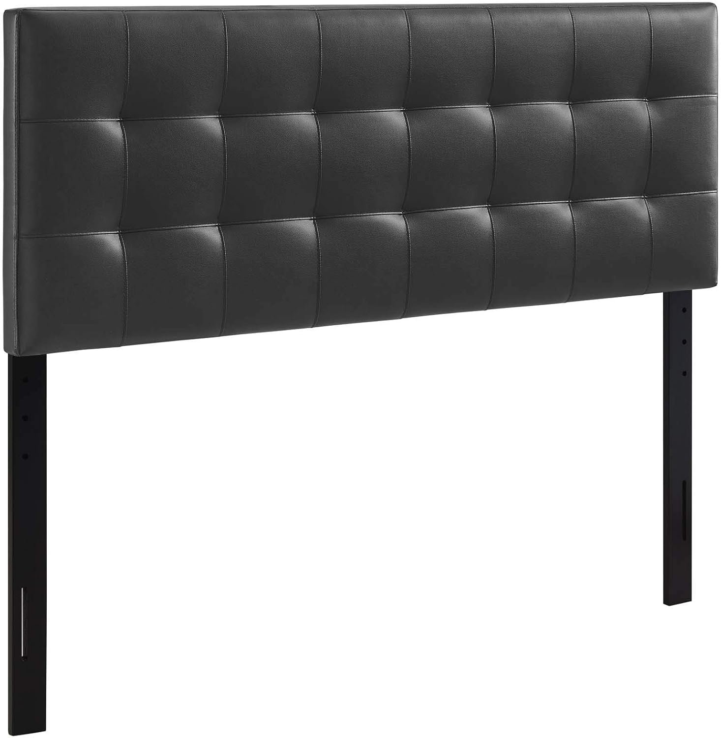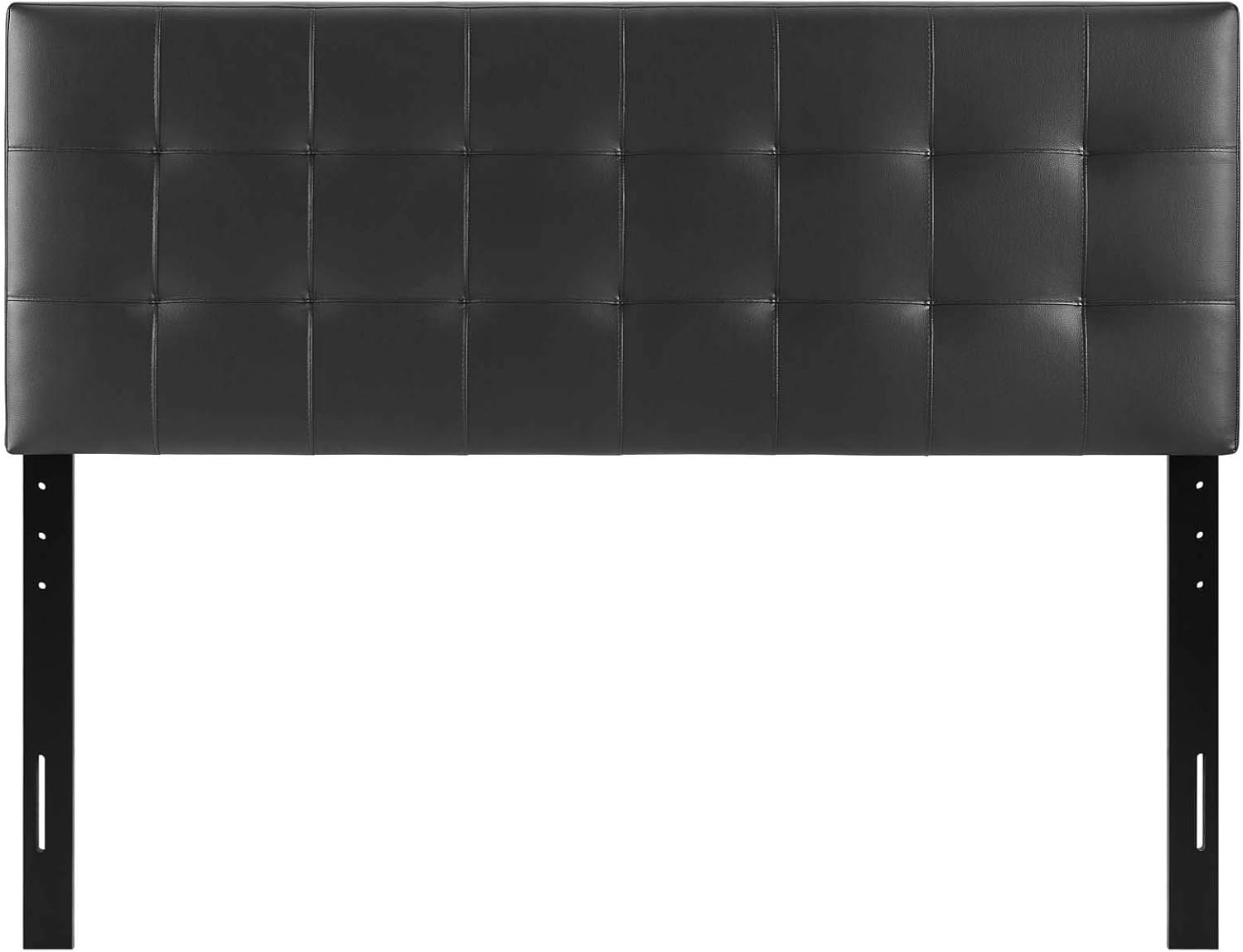 Upgrade your bedroom with the Modway Lily Tufted Faux Leather Upholstered Queen Headboard in Black, a sophisticated piece that makes a stylish statement. Featuring quality vegan leather and a timeless tufted design, this headboard blends elegance with comfort thanks to dense foam padding and durable construction. With seven adjustable height positions, it easily fits most queen bed frames—making it an ideal choice for both master and guest rooms.