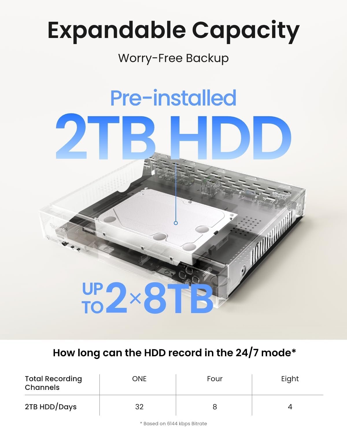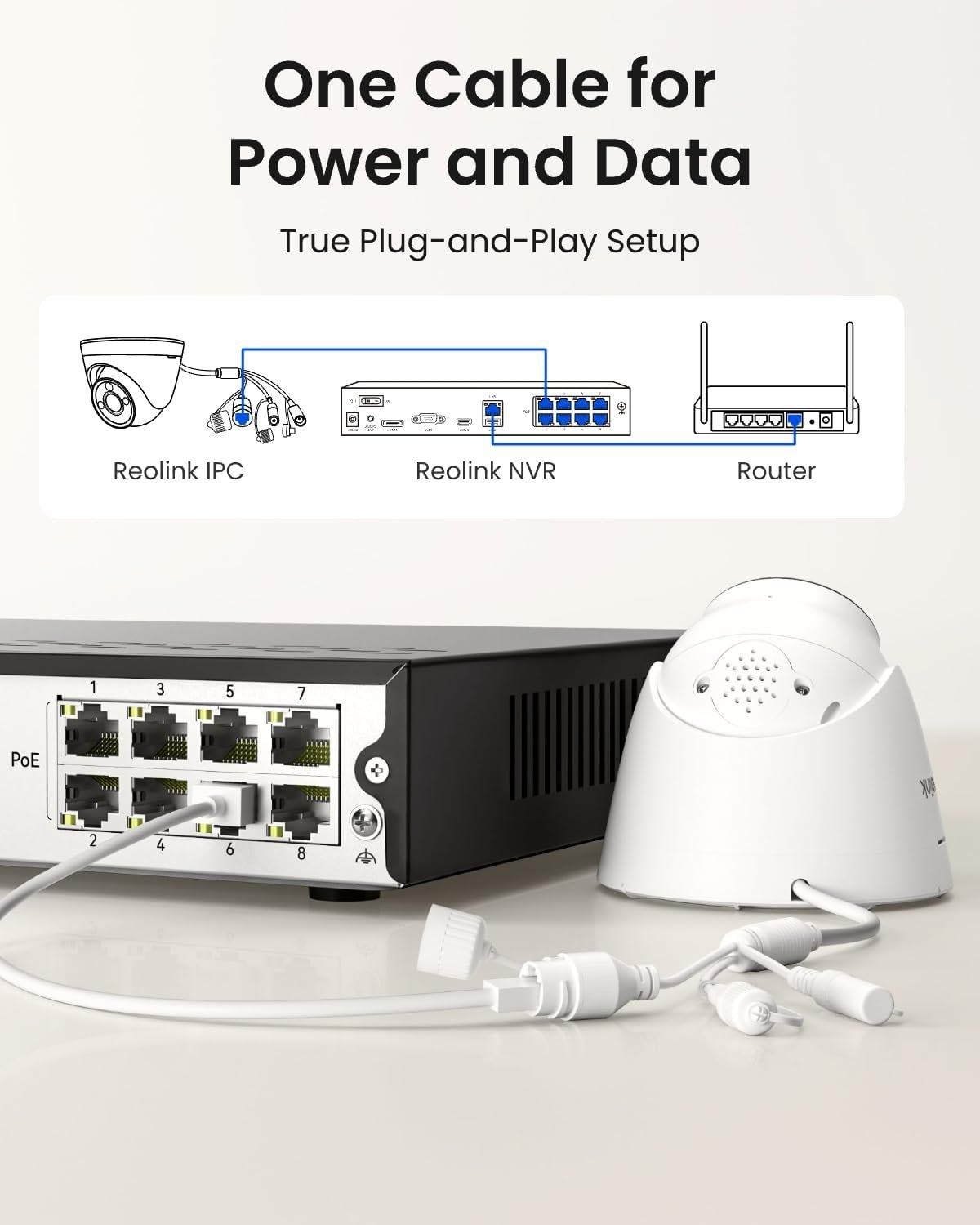 The Reolink RLN8-410 8-Channel PoE Network Video Recorder is a robust security hub for home or small business surveillance systems. Supporting up to 8 PoE IP cameras with resolutions up to 12MP and featuring a pre-installed 2TB hard drive for continuous 24/7 recording, it delivers reliable, high-quality footage and remote viewing capabilities. Easy plug-and-play setup with Power over Ethernet (PoE) minimizes wiring complexity, while local and mobile access through the free Reolink app ensures you stay connected to your cameras anywhere.