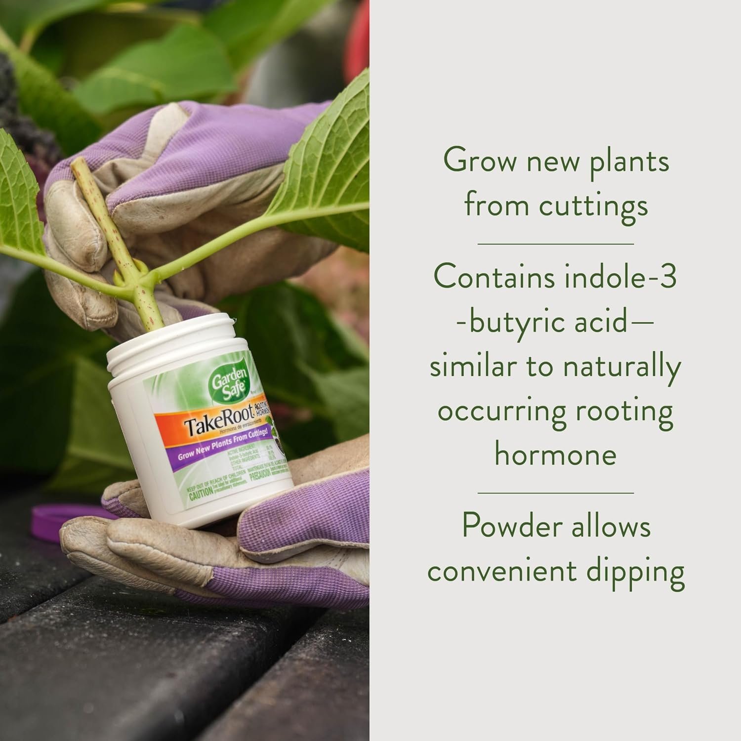 The Garden Safe Brand TakeRoot Rooting Hormone is a must-have for anyone looking to grow new plants from cuttings. Featuring the active ingredient indole-3-butyric acid, this easy-to-use powder promotes strong root development for a wide variety of home, garden, and greenhouse plants. Simply dip the cut ends of your favorite plants, including roses, African violets, and woody ornamentals, and watch them thrive. Trust Garden Safe for reliable results—perfect for gardeners eager to multiply their plant collection effortlessly.