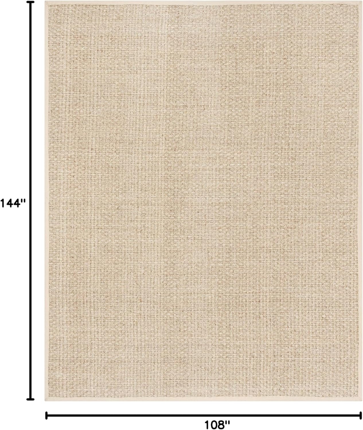 The SAFAVIEH Area Rug 9x12 from the Natural Fiber Collection combines eco-friendly craftsmanship and timeless style, woven from 100% seagrass for a rich, textured look. Its elegant basketweave pattern with a fabric border suits a variety of interiors, from coastal to contemporary. Durable and sustainably sourced, this rug is ideal for living rooms, bedrooms, and more. Trusted by millions, SAFAVIEH delivers both beauty and reliability, making this large area rug an excellent addition to any home.