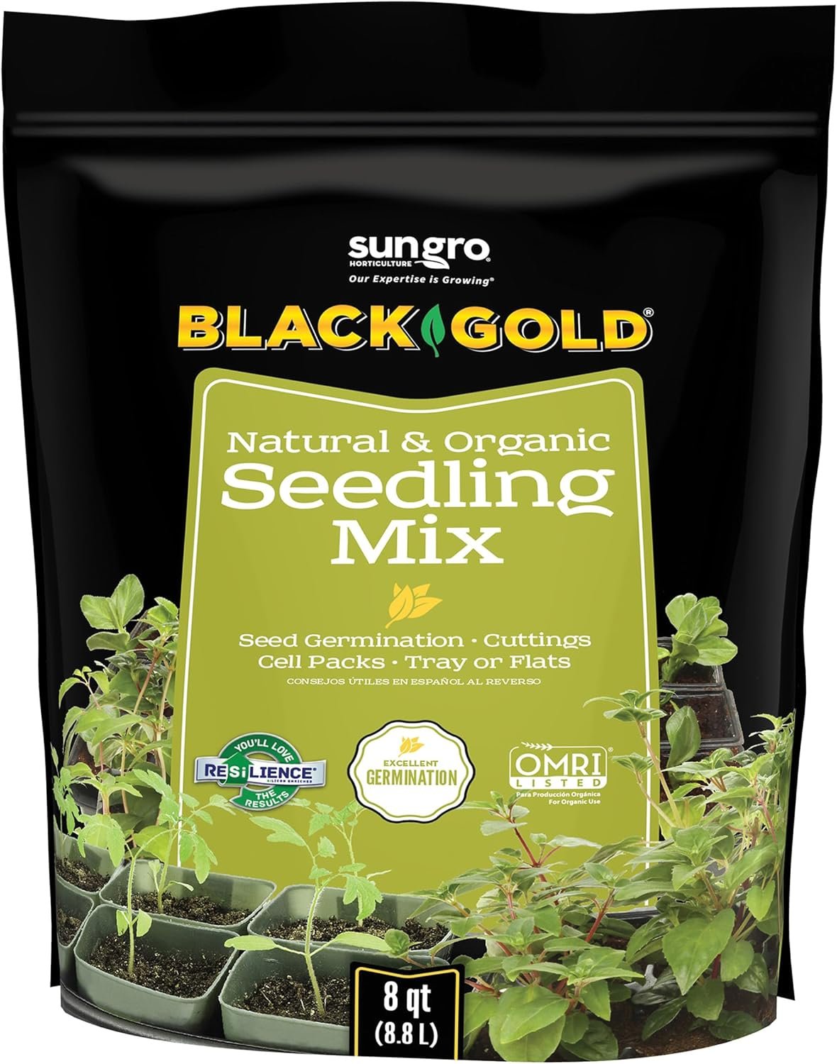 Give your seeds the best start with Black Gold Seedling Mix 8qt by Black Gold. This fine-textured, water-retentive mix is perfect for flats, pots, and plug trays, promoting outstanding seed germination. Enriched with organic wetting agents for even moisture and RESiLIENCE silicon additive for improved resistance to wilting, it's OMRI Listed for safe organic growing. Elevate your gardening success with this top-quality seed starting mix.