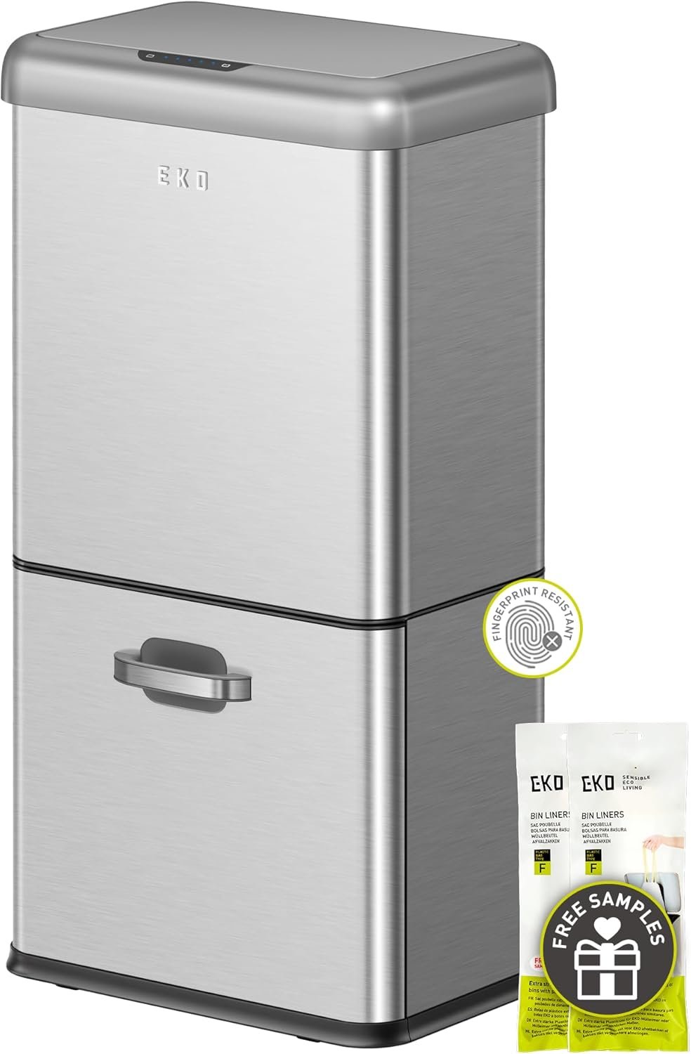Compared to popular options like the Simplehuman Dual Compartment Recycler and iTouchless 16 Gallon Motion Sensor Can, this product wins on price, build quality, and battery life. The EKO model’s fingerprint resistant stainless steel and soft close lid are significant upgrades over most budget motion sensor bins.