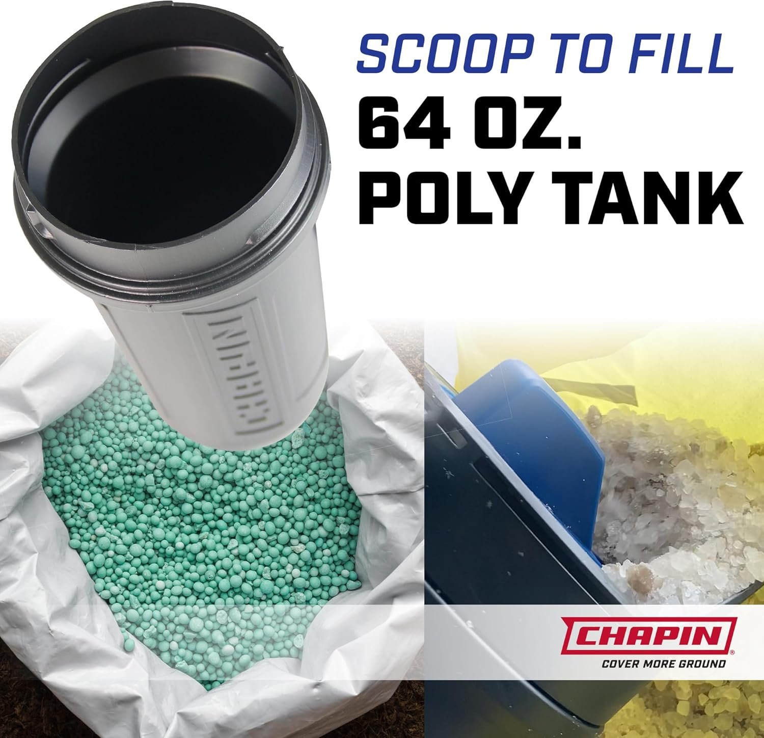 - High-capacity poly bottle spreader (64 ounces): Designed for longer tasks—holds turf seed, ice melt, fertilizer, or sand with a wide, easy-pour opening.