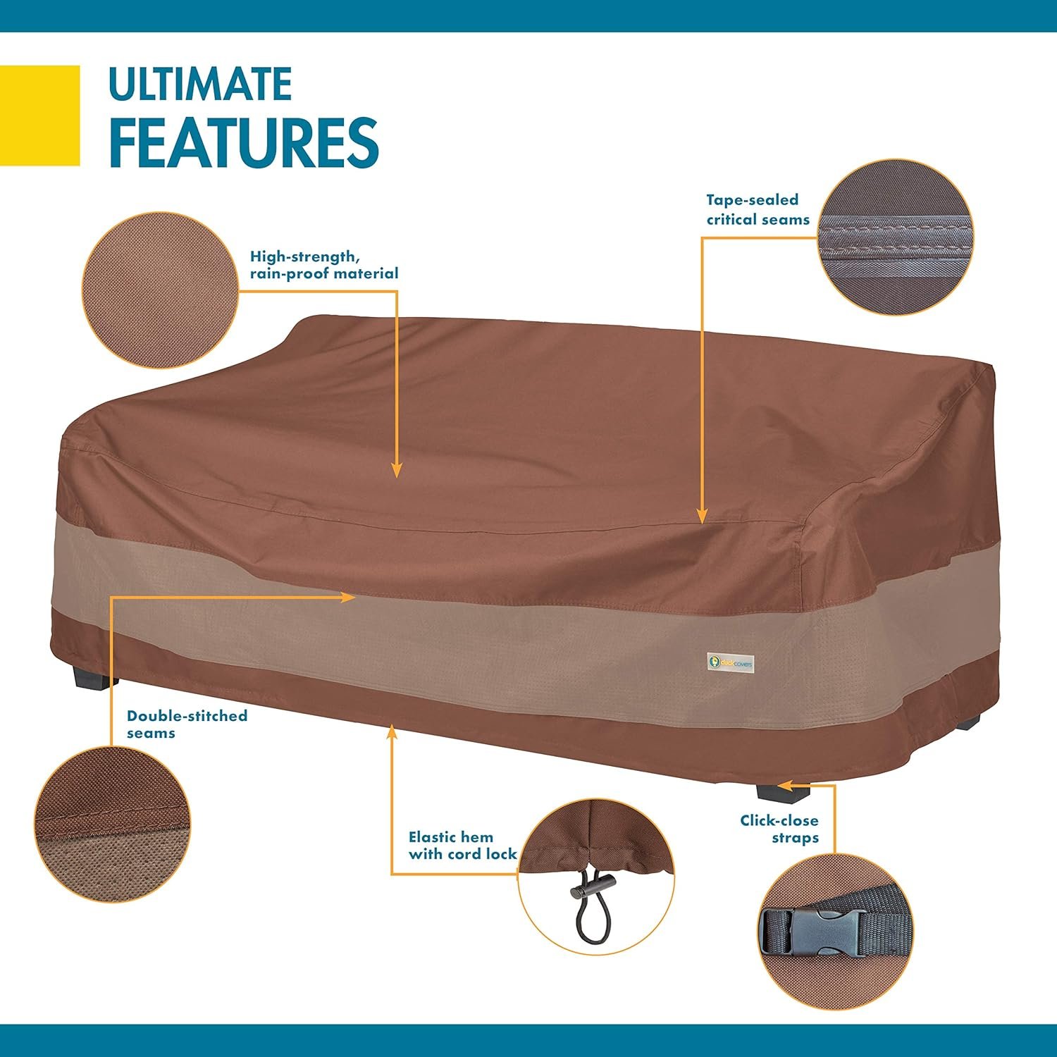 - Custom Fit Design: The elastic hem cord and cord lock system deliver a snug fit around most sofas, acting as a loveseat protector that can tackle unpredictable weather and gusty winds.