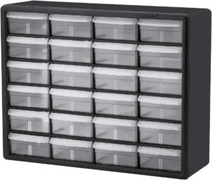 The Akro-Mils 64-drawer storage cabinet is widely considered one of the most versatile organizers for home or professional use. This storage cabinet excels at keeping DIY, hobby, garage, or classroom spaces neat without sacrificing easy access to everything you need.