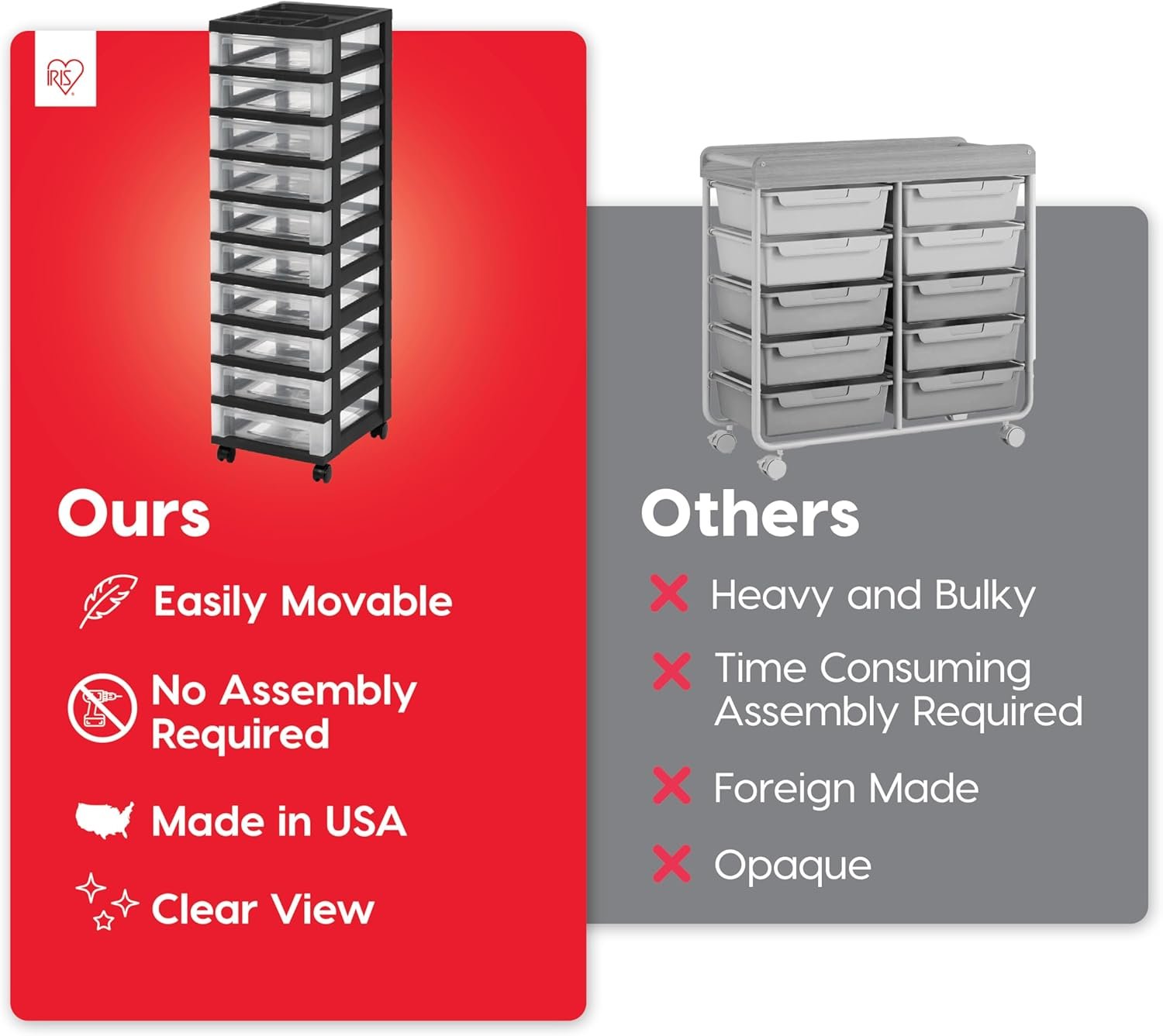 - Versatile wheels: Organizer wheels make moving the IRIS USA unit a breeze, so you can reposition this model in classrooms, dorms, or domestic studios as your needs change.