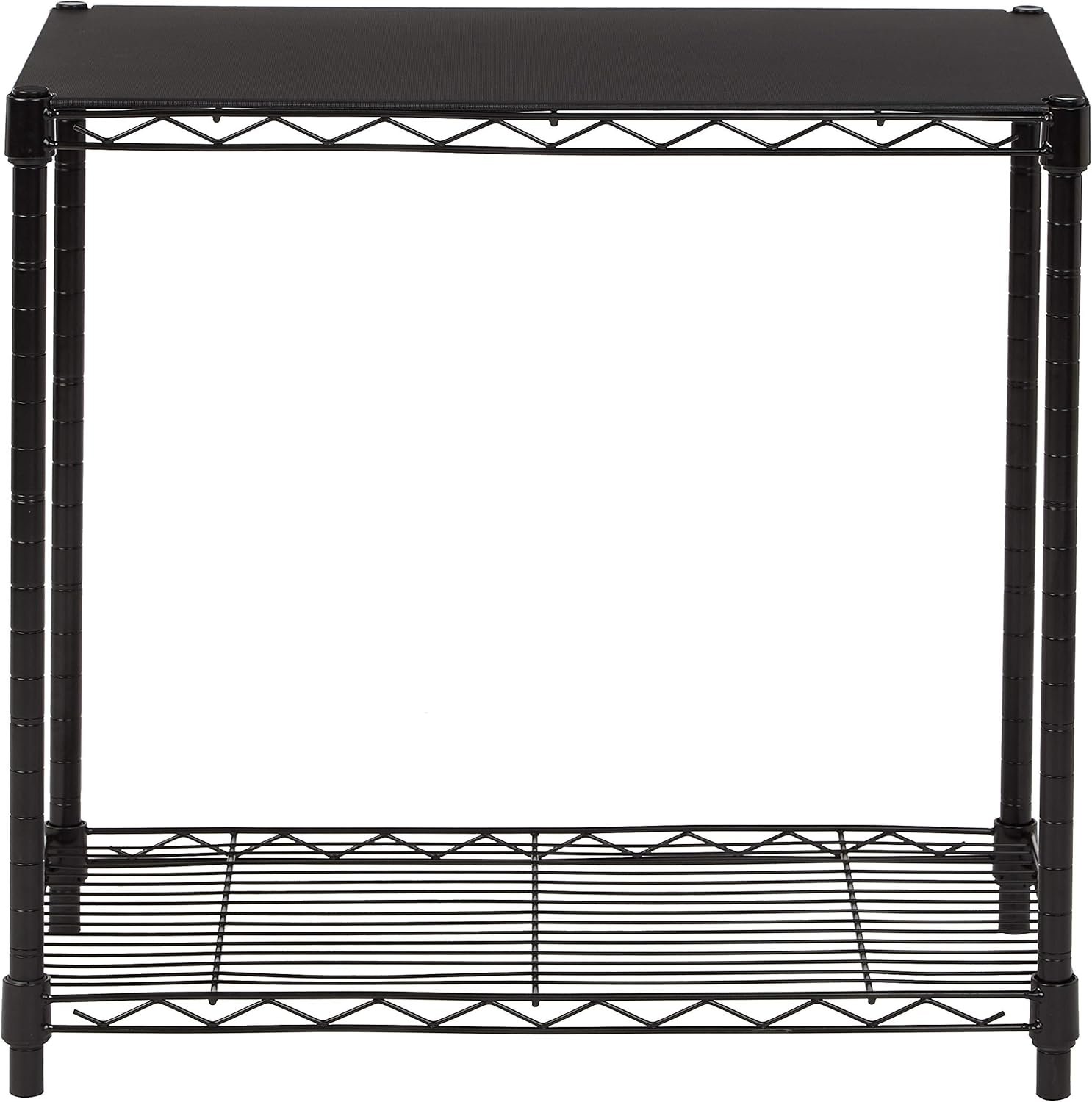 The Amazon Basics 2-Shelf Stackable Storage is a versatile shelving unit perfect for optimizing small spaces. Featuring a durable metal frame with a sleek powder-coated black finish, it offers both a wire mesh shelf and a sturdy MDF wood top for flexible organization. Its stackable, modular design lets you expand vertically for up to four levels of tidy storage, making it ideal for homes and offices. Choose this space-saving Amazon Basics solution for affordable, stylish organization.