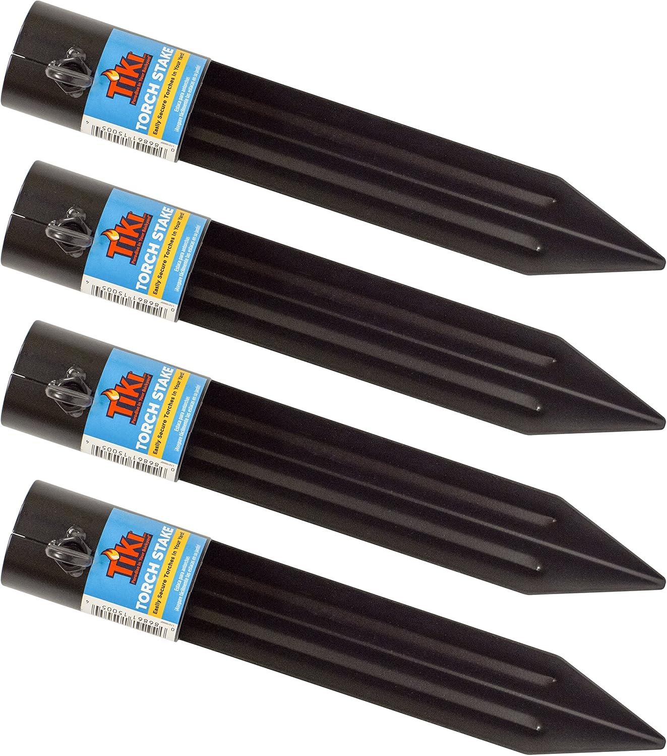 Enhance your outdoor ambiance with the TIKI Metal Torch Stakes 4-Pack from the TIKI Store, perfect for patios, lawns, and gardens. These durable, weather-resistant stakes securely hold bamboo or metal torch poles up to 1.25 inches in diameter, ensuring your torches stay stable and upright. With easy tool-free installation and a versatile, powder-coated design, this set delivers style and reliability while making it simple to illuminate your outdoor space.