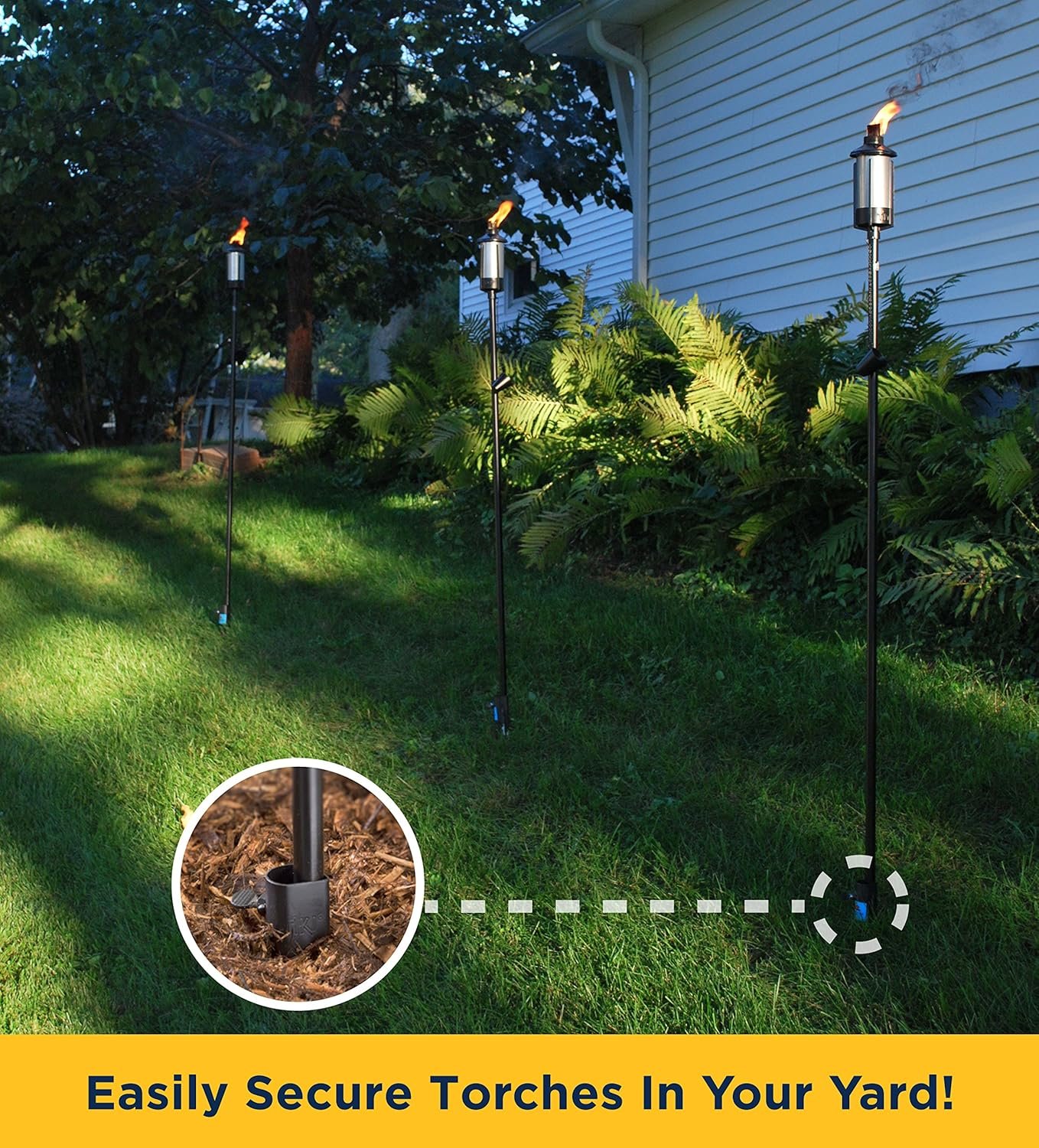 One of the top benefits is that torch stakes firmly secure both bamboo torch support and metal poles for consistent lighting throughout the garden or patio.
