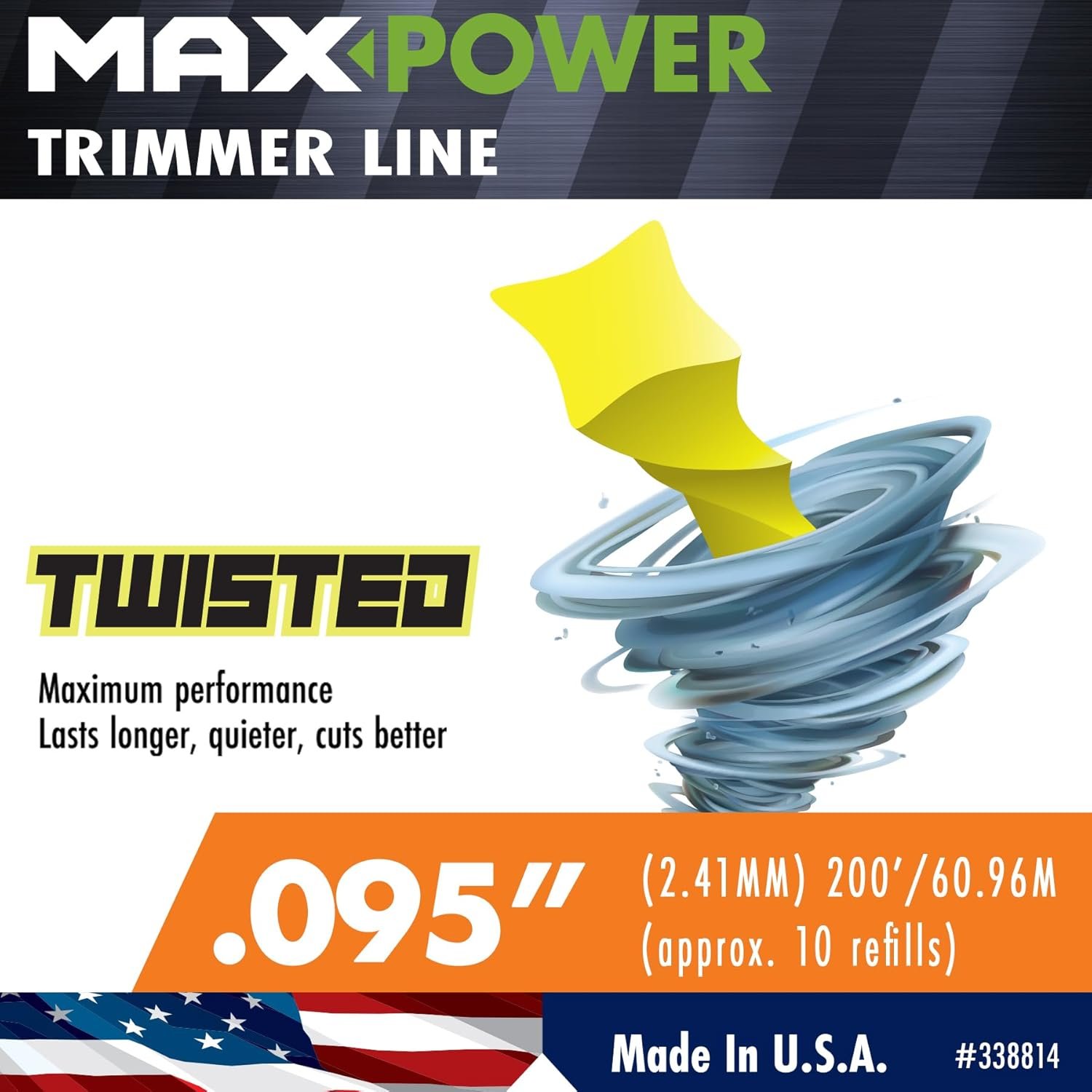 Upgrade your lawn care with the MaxPower 338814 Premium Twisted Trimmer Line, offering a generous 200-foot length in a vibrant optic yellow for easy visibility. Crafted in the USA from commercial-grade co-polymer resins, this line promises exceptional durability and performance for even the toughest trimming jobs. With 10 convenient refills included, it's a reliable and cost-effective choice for both homeowners and professionals. Discover why the Maxpower brand is trusted for quality landscaping tools.