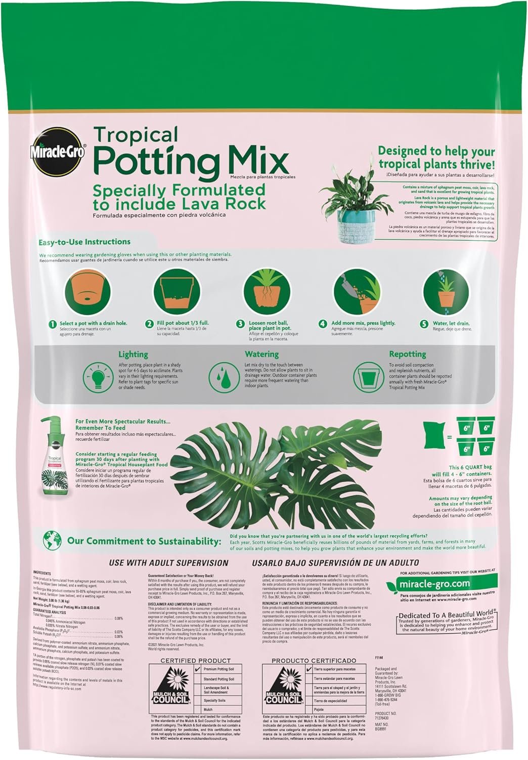 If you want superior growing results for your favorite, hard-to-please houseplants, tropical soil is the specialty potting blend designed just for them. Right from the start, this product stands out by supporting popular indoor plants like fiddle leaf fig, monstera, and snake plant with rich, plant-friendly nutrition and superb container drainage.