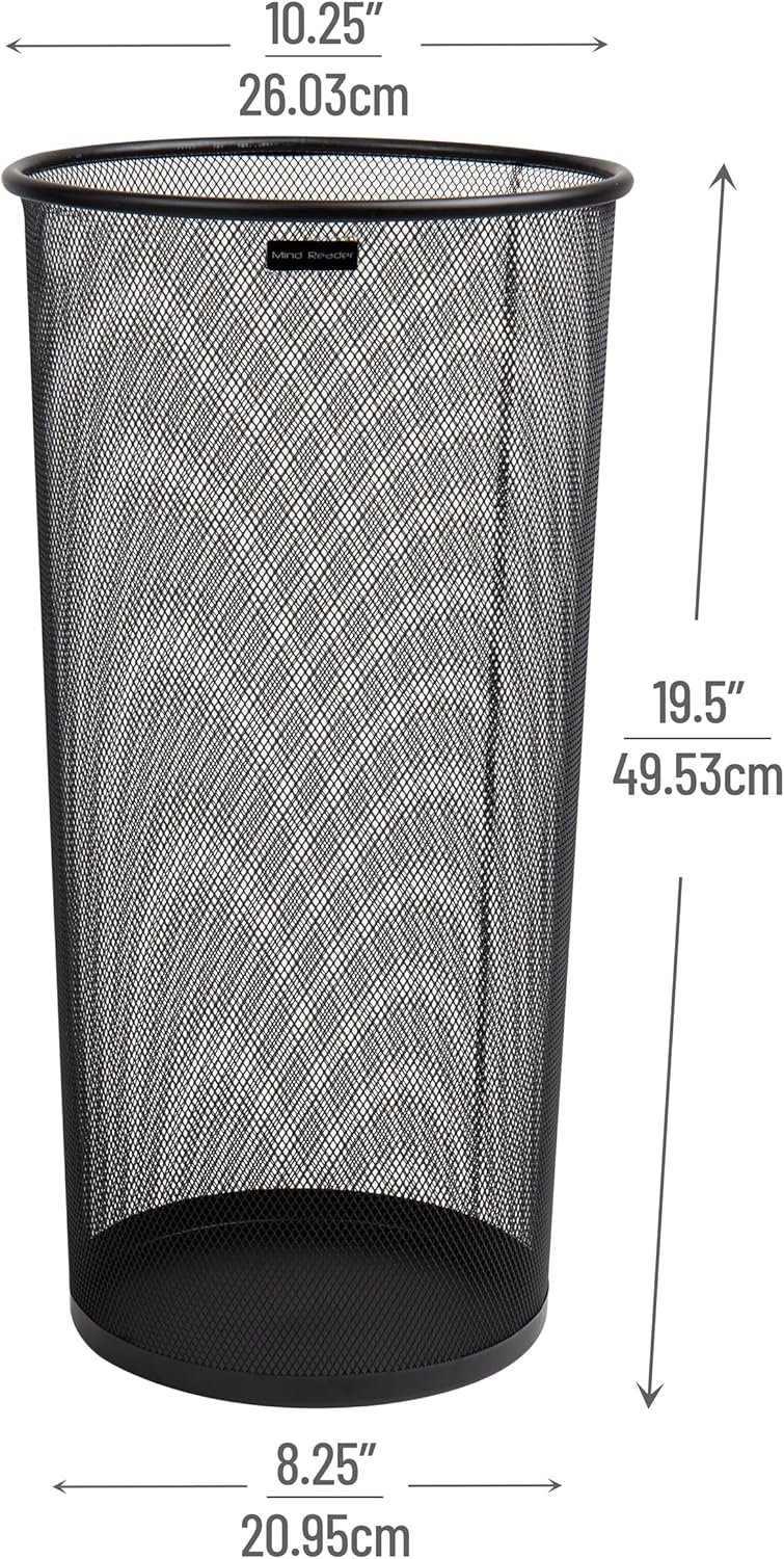 Keep your entryway or office organized with the Mind Reader Umbrella Stand, a sleek and sturdy metal mesh storage solution from the Mind Reader Store. This versatile organizer is perfect for umbrellas, canes, mailing tubes, and more, thanks to its multipurpose design and durable construction. The contemporary mesh style fits seamlessly with modern décor, while functional airflow and drainage ensure quick drying and cleanliness. Its slim, space-saving footprint makes it ideal for even the smallest corners—an excellent choice for tidy, efficient spaces.