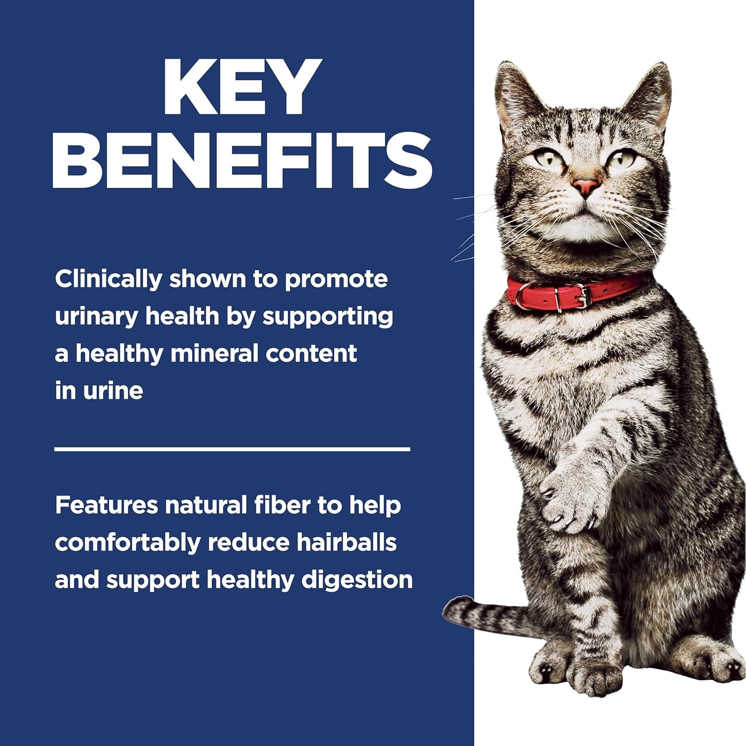Hill's Science Diet Urinary Hairball Control Dry Cat Food is expertly formulated to support your adult cat’s entire urinary system with optimal magnesium levels, while natural fiber helps minimize hairballs. This chicken recipe features omega-6, omega-3, and vitamin E for a healthy skin and shiny coat. Made in the USA with trusted global ingredients, it’s the #1 veterinarian recommended choice for cats ages 1-6. Give your feline the health boost they deserve with Hill's Science Diet!