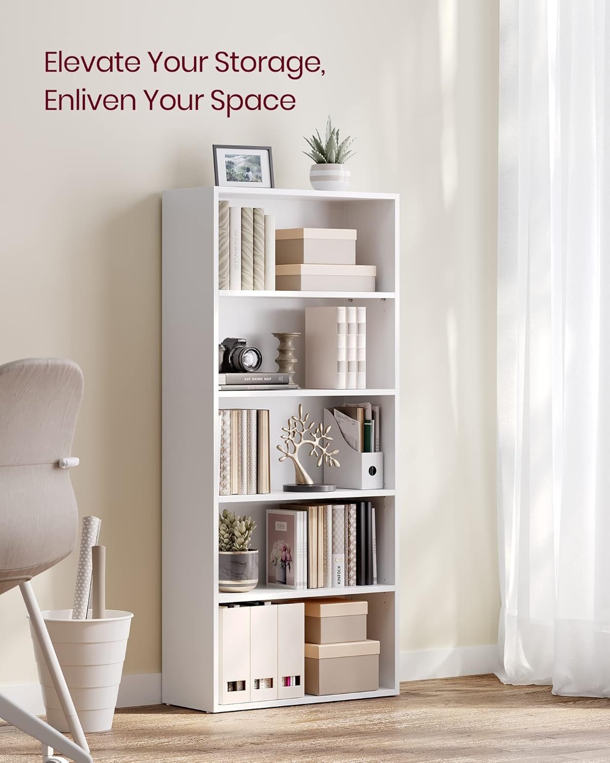 The VASAGLE Adjustable Bookshelf Bookcase blends practical storage with modern industrial flair, making it ideal for living rooms, bedrooms, and home offices. Its five spacious shelves and height-adjustable boards adapt to your needs for organizing books, plants, décor, and more. Built with a sturdy metal frame and durable particleboard, this shelving unit offers reliable performance and stylish appeal. Easy to customize and great value for the price — check it out today to upgrade your space!
