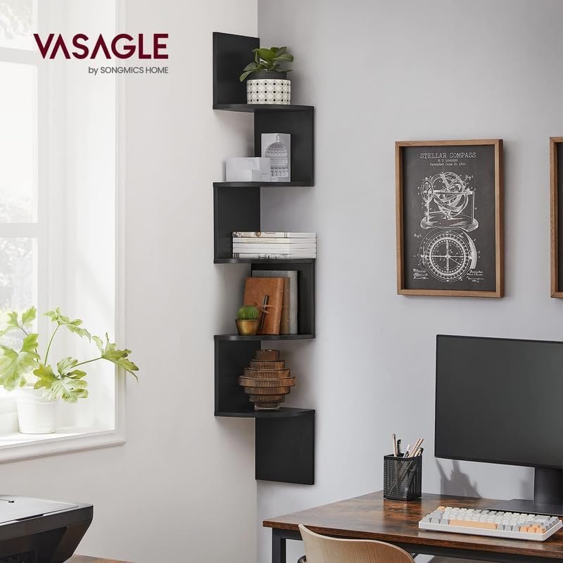The VASAGLE Corner Floating Bookshelf is a space-saving wall-mounted shelving solution designed to maximize storage in small or awkward corners. Its sturdy MDF boards and metal bracket create a sleek modern look while providing reliable support for books, décor, plants, or small essentials. Easy to install with included hardware, this triangle corner shelf adds functional organization and contemporary style to any room.
