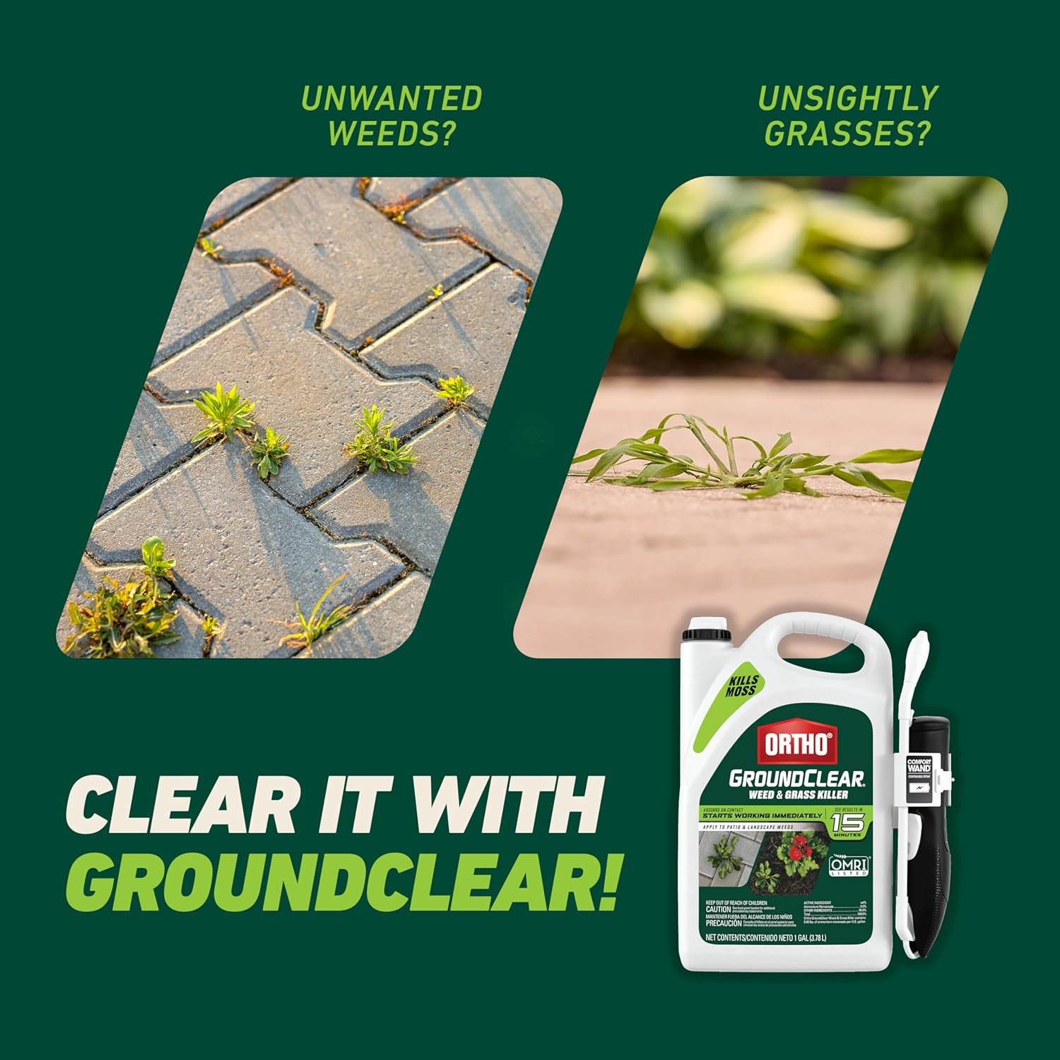 Eliminate stubborn weeds and grasses fast with the Ortho GroundClear Weed & Grass Killer, a ready-to-use spray featuring an ergonomic Comfort Wand for effortless application. This OMRI Listed solution from Ortho targets nuisances like dandelions, chickweed, crabgrass, and moss, delivering visible results in just 15 minutes and becoming rainproof in two hours. Perfect for walkways, driveways, and landscape beds, it’s the organic-friendly choice for maintaining pristine outdoor spaces. Transform your yard confidently and efficiently with Ortho’s trusted weed control solution.