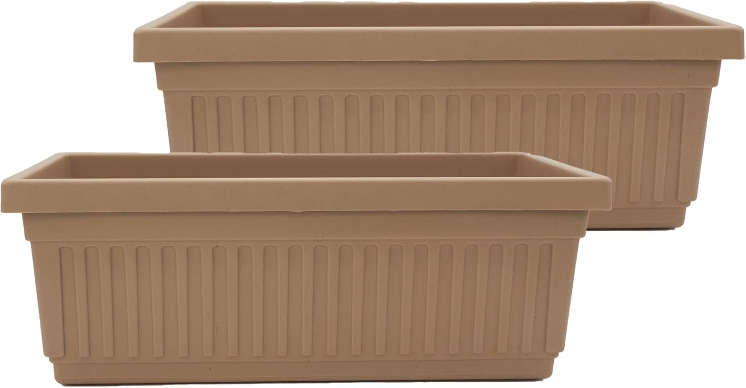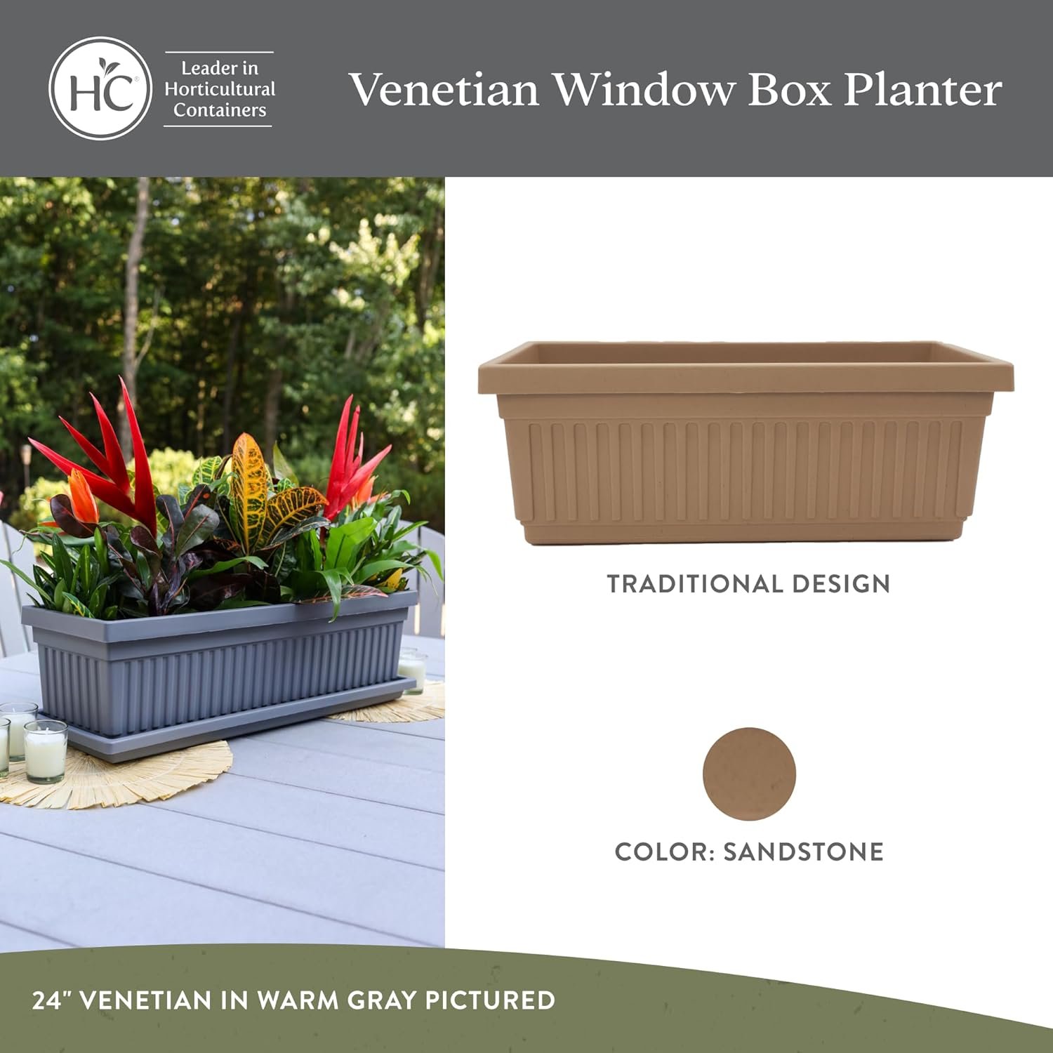 • Classic Venetian planter box styling: Fluted sides and a neutral sandstone finish blend easily with modern or traditional window box decor.