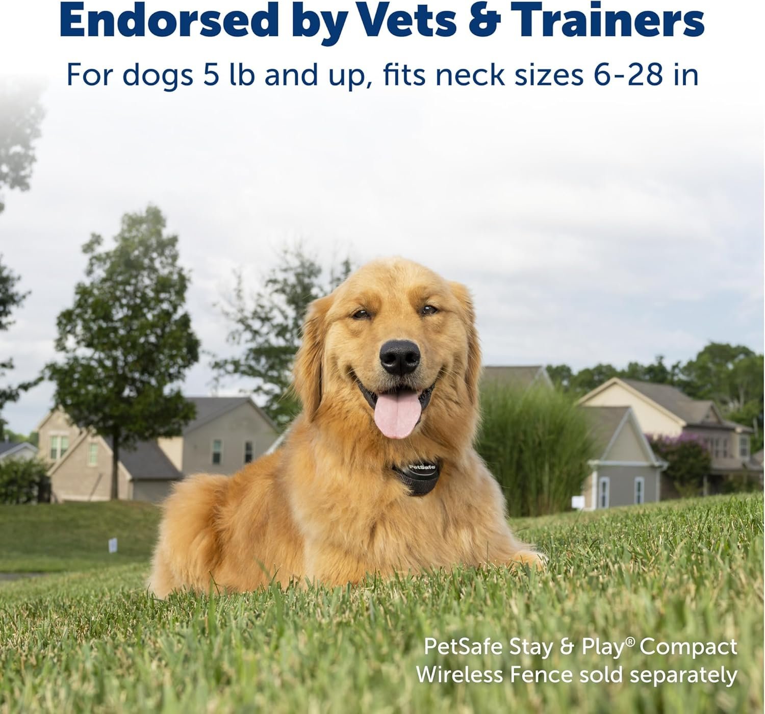 The PetSafe Stay & Play Pet Fence Wireless is a top-rated, rechargeable, and waterproof receiver collar designed to keep your pets safe and contained without underground wires. Compatible with all PetSafe Wireless Fence systems and adjustable for neck sizes 6 to 28 inches, this collar offers five static correction levels plus a tone-only option to suit any dog's temperament. With quick charging, long battery life, and the ability to add unlimited collars for multiple pets, this product from the PetSafe Store is a smart, convenient solution for loving pet owners.