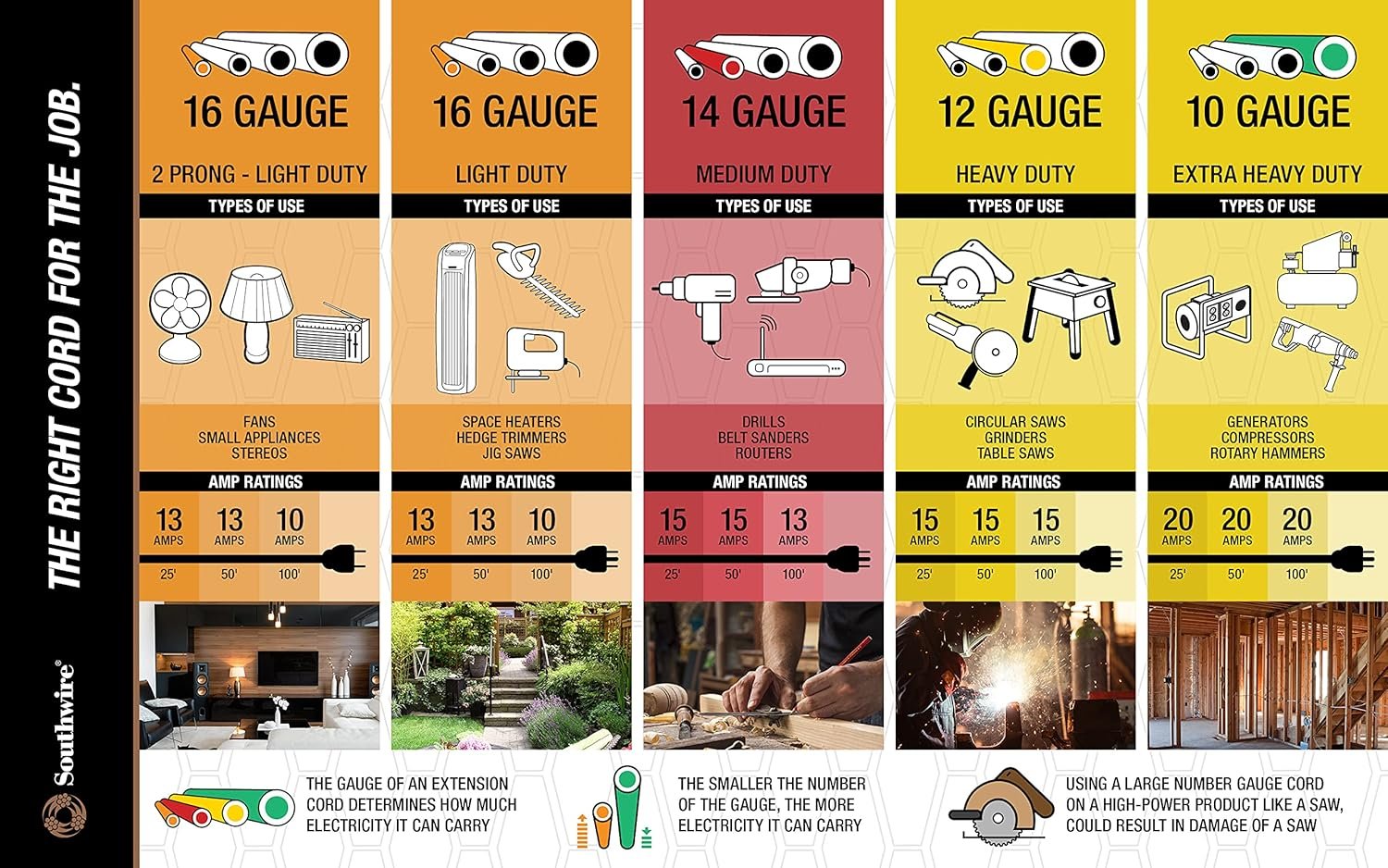 The Woods E103 Extension Cord Storage Reel offers a simple, efficient way to organize and store long extension cords, hoses, or holiday lights with its tangle-free reel design and side crank handle. Built with lightweight but rugged plastic, it holds up to 150 ft of 16/3 gauge cord or 125 ft of 14/3 gauge cord, making it ideal for garages, workshops, gardens, and seasonal décor storage. Easy to grip and portable, it keeps your space clutter-free year-round.